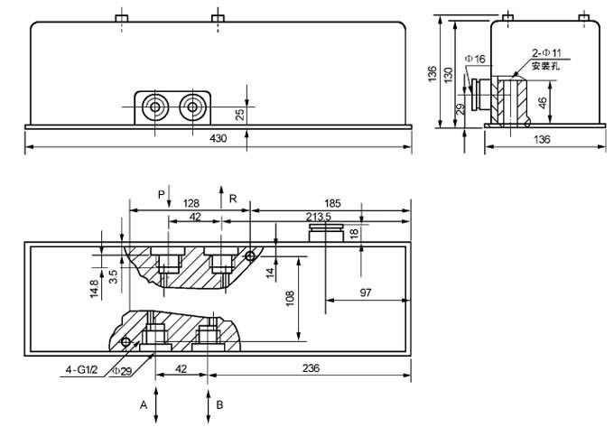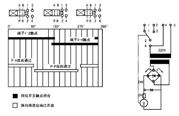 一、概述 24EJF-M型(原SA-V 型)二位四通换向阀是一种采用直流电机驱动阀芯移动,以开闭供油管道或转换供油方向的一种集成化的换向控制装置;即使在恶劣的工作条件下(如低温或高粘度油脂),动作仍相当可靠。 该阀适用于公称压力为40MPa以下的干、稀油集中润滑系统以及液压系统的主支管路中,同时也可作二位四通,二位三通和二位二通三种型式使用。 二、技术参数