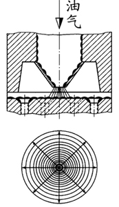 Jetsplit油气分配器是一种新颖的油气流分配装置,由于其油气入口处的独特设计,使进入油气分配器的空气速度大大提高,这也正是油气润滑效果是否明显的关键所在。喷射到分配芯表面的油气流以中心圆的方式向四周均匀扩散,犹如一颗石子投入水中所形成的向四周扩散的波浪一样,使油气流能均匀地进入油气分配通道。